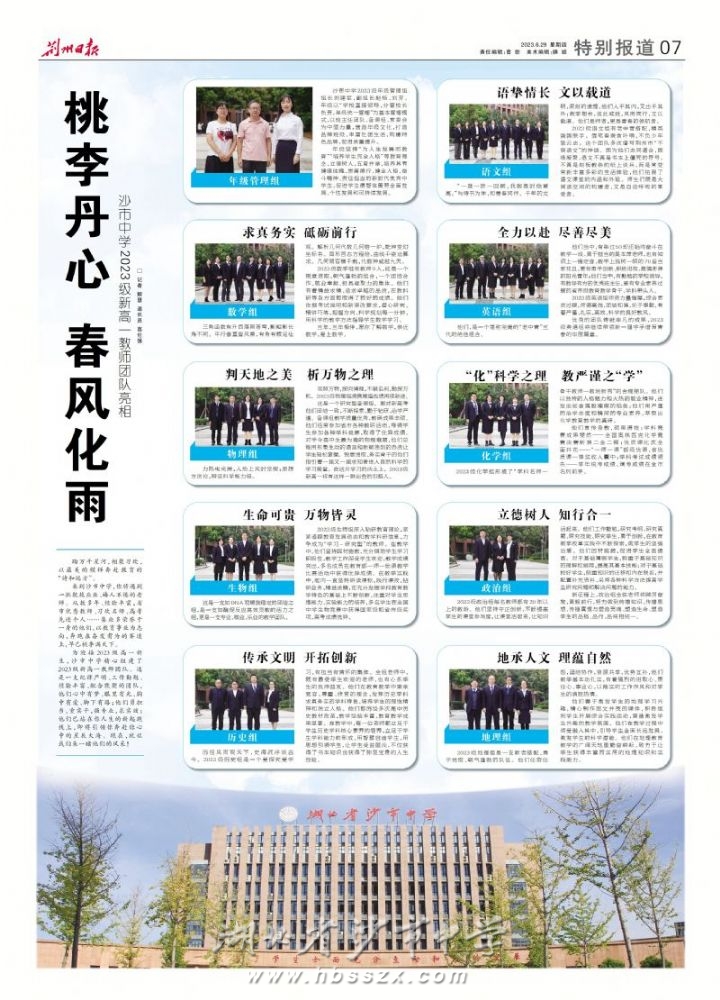 《荆州日报》2023年6月29日专版报道我校2023级新高一教师亮相