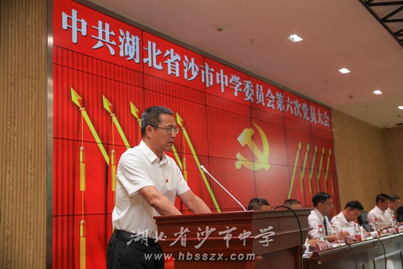 大会全面总结了近5年来学校党的建设和事业发展取得的成就,明确了新时期学校的奋斗目标,审议通过了《中共湖北省沙市中学委员会五届党委工作报告》《中共湖北省沙市中学委员会五届纪委工作报告》,选举产生了中共湖北省沙市中学委员会六届党委委员和六届纪委委员。大会动员全校共产党员和广大干部职工,齐心协力,踏实肯干,共谋发展,再续新篇!为把沙市中学建成全省一流高中的奋斗目标,为助推荆州加快建成江汉平原高质量发展示范区贡献沙中人的智慧与力量!