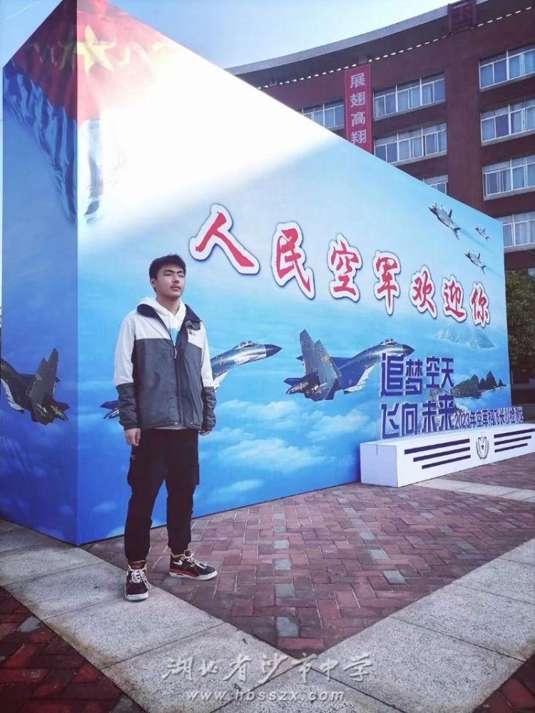 空军招飞局领导赴我校展开政审工作 姚为泽上高中时就有从军梦。恰逢招飞,他和众多同学一起参加体检。从校医的初检,到市级的二检,再经历高考体检,又到长沙两次复检和最终的定员测试。层层检测,层层选拔,终于顺利过关,成了荆州市少有的招飞幸运儿。广州招飞局领导不远千里来政审,鼓励他高考加油,超过特招线30分就有希望。沙市中学党委副书记、校长徐善慧也鼓励他珍惜机会奋力拼搏。班主任每天晚餐后监督他认真学习自己的“跛腿”科目——语文和英语,六位老师经常在住宿生的延晚时间帮他答疑解惑。功夫不负有心人,今年高考,姚为泽超过特招线68分,考出了高中三年来的最佳战绩。