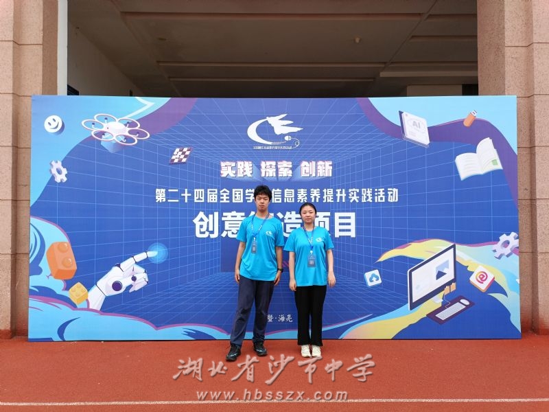 2023年全国师生信息素养提升实践活动(第二十四届学生活动)现场交流展示活动于2023年7月17日-23日在浙江诸暨举办。我校2023年湖北省“楚才计划”荆州项目学生2103班廖秭宣、2104班宋泽恩同学在高中组“创意智造”项目中表现优异,荣获本次活动最高奖项国家级荣誉“创新之星”称号。