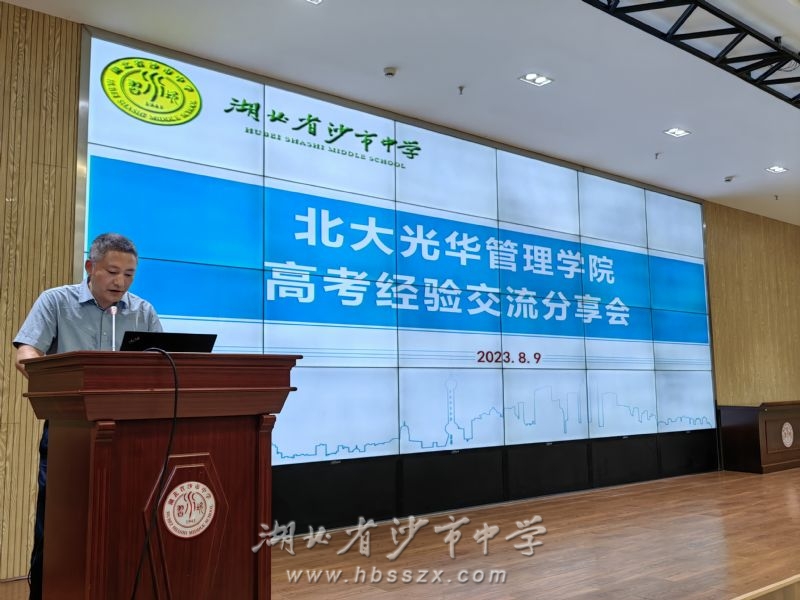 8月9日下午,北京大学光华管理学院师生一行14人走进湖北省沙市中学,为300余名高三学生讲述了他们的奋斗时光。市委组织部人才科科长陈军等市领导和沙市中学校领导、2021级部分师生参加了活动。
