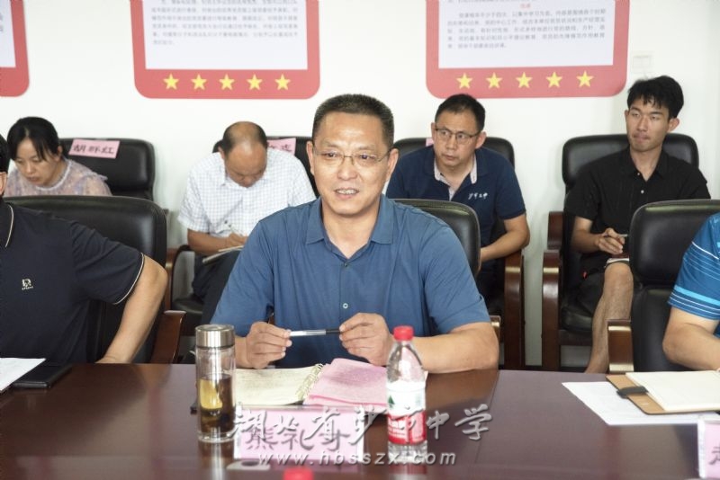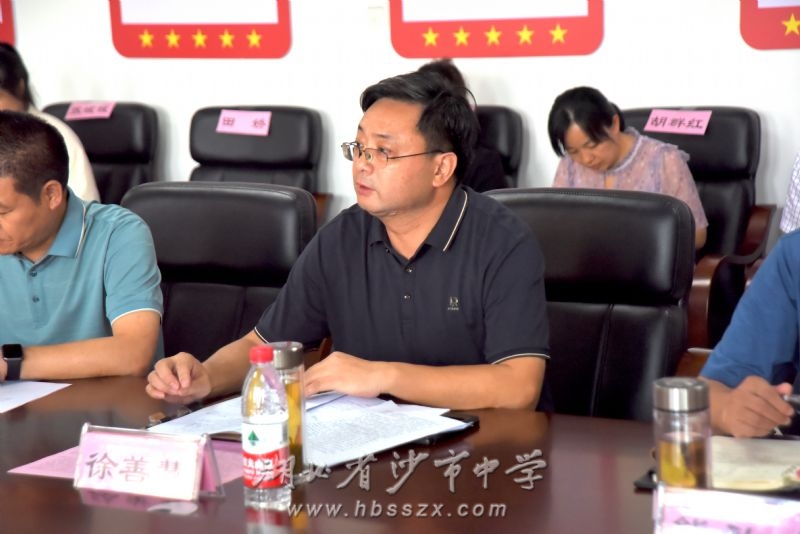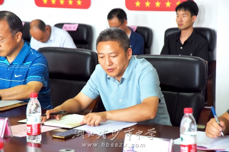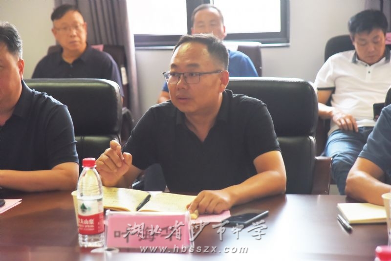 在集中交流环节,沙市中学党委委员、副校长唐年新主持会议,介绍与会嘉宾和我校迎接领导及教师。党委副书记、校长徐善慧发表了欢迎致辞,对远道而来的客人致以亲切的问候。郧阳区第一中学校长毛士文,洪湖贺龙中学校长叶海华先后介绍了己校办学历史,办学理念以及与我校的不解之缘,同时提出希望和沙市中学在教师教研、干部培训、管理经验、优生培养等方面加强全方位多领域的交流合作。党委书记熊礼才介绍了学校发展历史和办学成绩,致力于“赓续办学传统,发扬过去荣光”,系统阐释了学校从“以文化人,以德铸魂、以质提神和以爱培根”四项举措推进学校高质量发展。