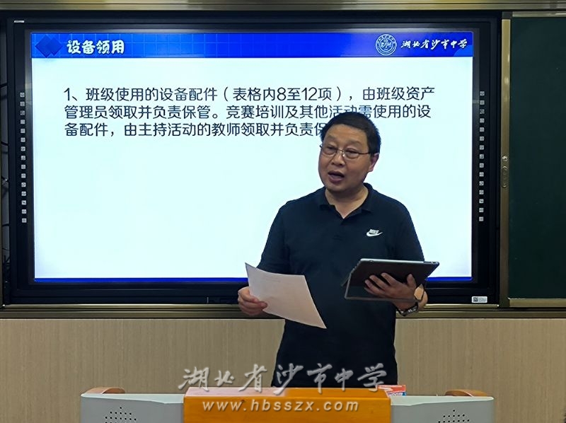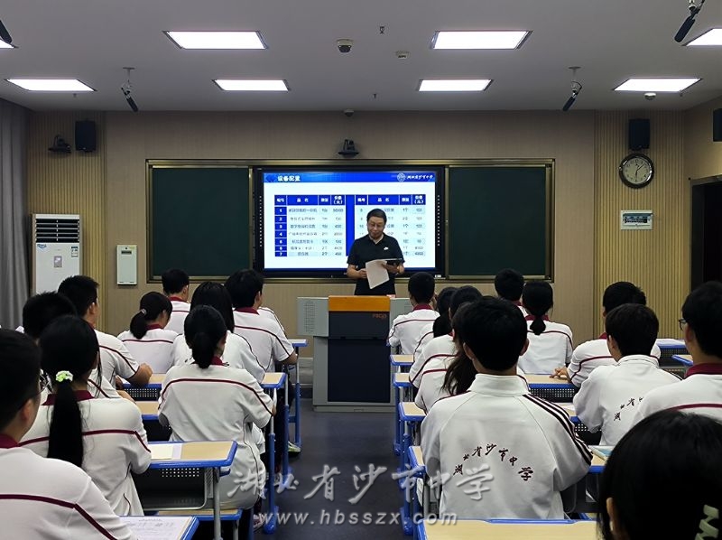 培训会现场 9月7日下午,沙市中学信息技术与网络中心召集高一、高二年级各班班长和资产管理员,在综合楼 515 录播教室召开专门会议,中心负责人关信章老师就班级信息设备的使用和管理对与会学生干部进行了专项培训。