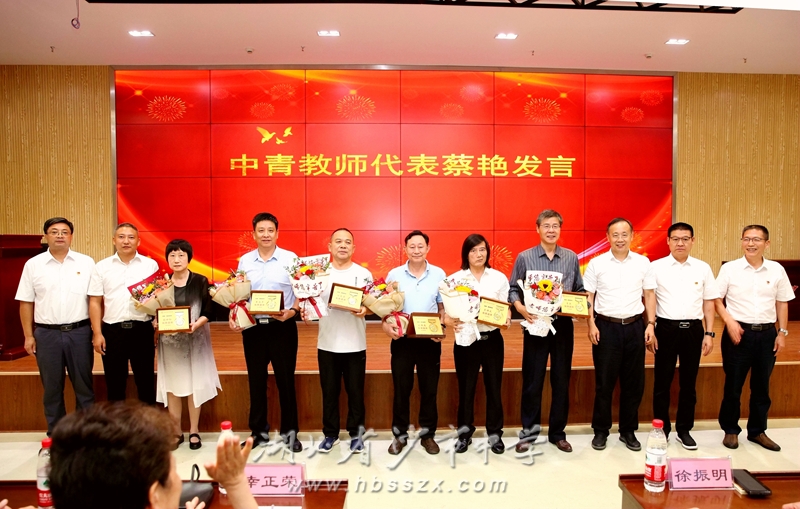 湖北达雅生物科技股份有限公司董事长徐振明,党委副书记、校长徐善慧共同为获得市级以上荣誉的老师颁奖。
