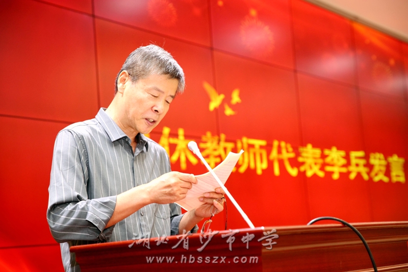 李兵老师代表荣休教师发言。他满怀深情地回顾了在沙市中学的难忘岁月,饱含着对教育事业的热爱、眷恋,表达了对学校和老师们的美好祝福。