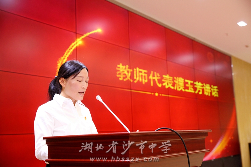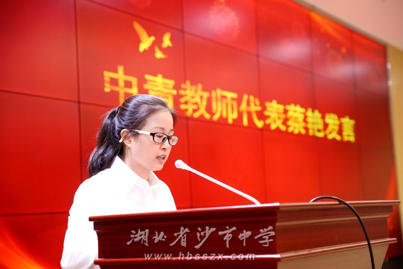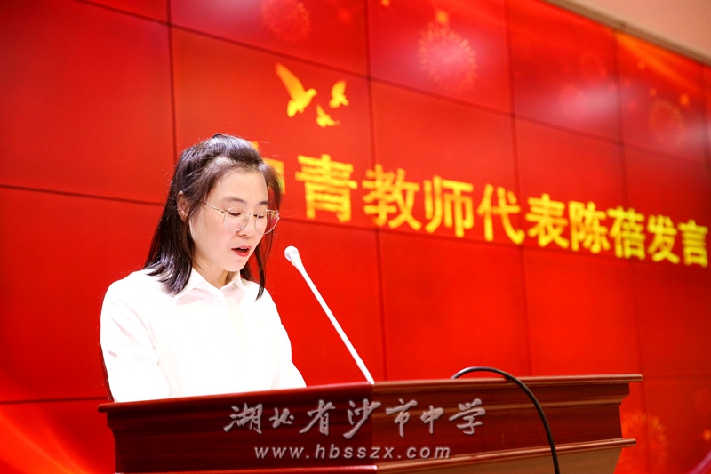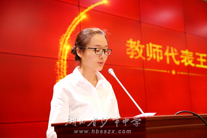 获奖教师代表王诗颖在发言中说:从年轻气盛到沉稳冷静,从焦虑急躁到耐心从容,是沙市中学给了我耕耘和收获的沃土,让我找到实现人生价值的座标。