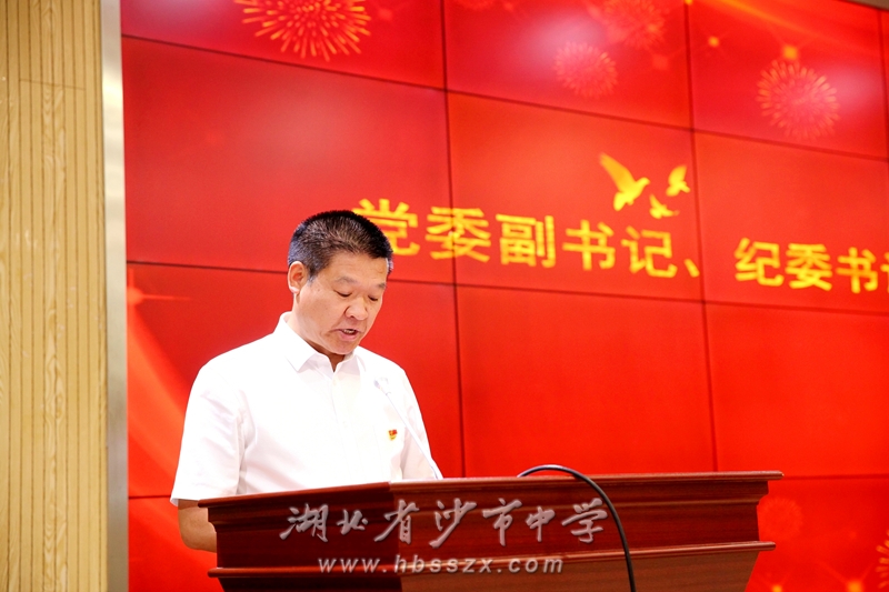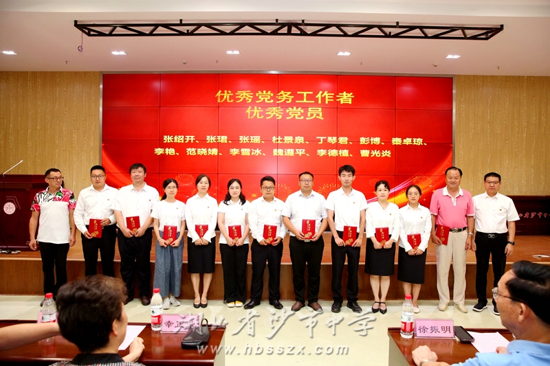 湖北新地投资集团有限公司执行董事、沙市中学85届校友刘剑,党委副书记、纪委书记李义国共同颁发“优秀党员”“优秀党务工作者”等奖项。