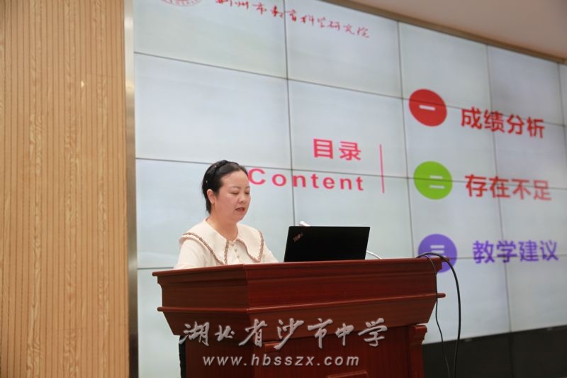 荆州市教科院生物教研员吴雪玲作质量分析报告 荆州市教科院党总支委员、副院长陈子俊作教学督导检查反馈,主要是针对上学期的教学研究、课堂教学、学生调研等情况进行说明。