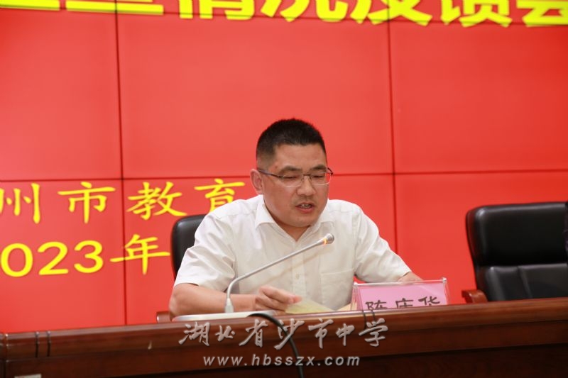 9月26日下午,荆州中学、沙市中学教学质量分析暨教学督导检查情况反馈会在沙市中学综合楼二楼会议室召开。荆州市教育局党组成员、副局长陈庆华出席并讲话,市教育局基教科科长宋国亮主持会议。