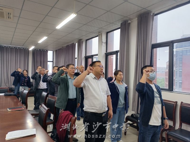 沙市中学2022级支部重温入党誓词现场 根据市委组织部、市教育局直属机关委员会的安排,结合沙市中学实际工作,9月25日下午,湖北省沙市中学各党支部开展了以“强化学习凝心铸魂,推进学校高质量发展”为主题的主题党日活动。