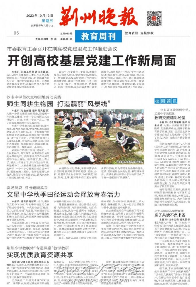 《荆州晚报》2023年10月13日报道我校师生同耕生物园,打造靓丽风景线