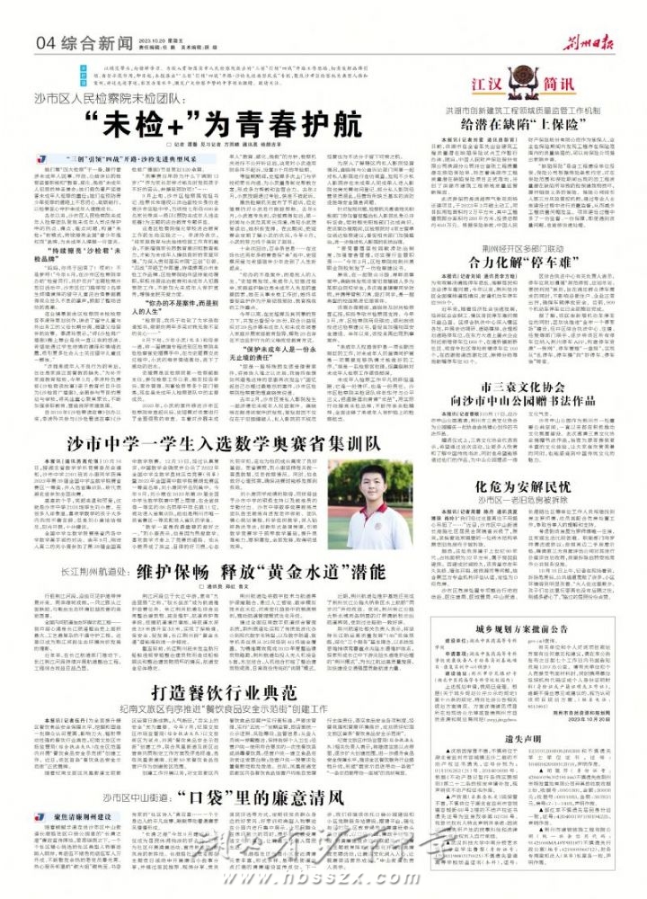 《荆州日报》2023年10月20日报道我校学生刘小康进入数学奥赛省集训队