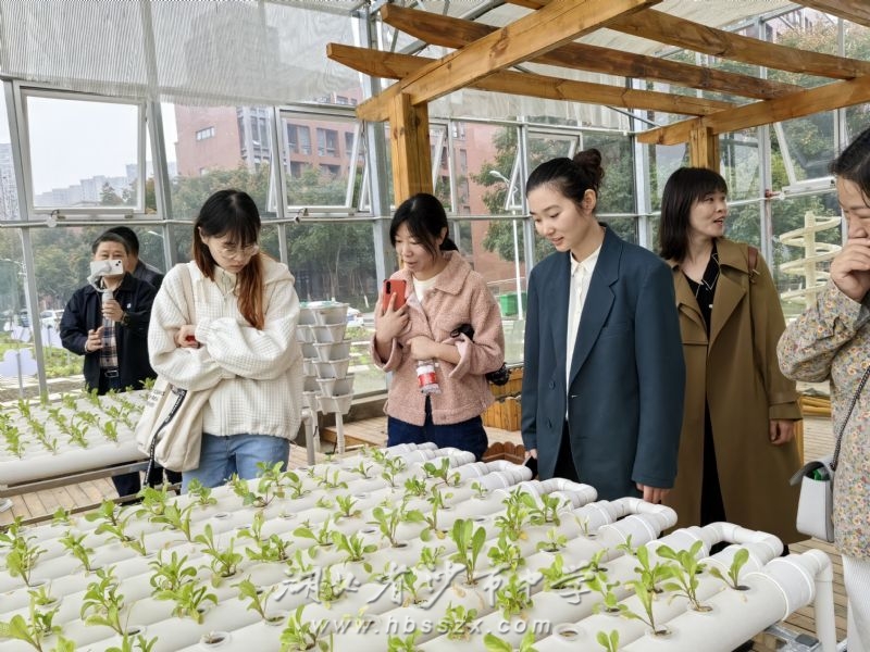 期间,各校教师参观百草园。教导处主任潘磊向各校老师介绍沙市中学百草园建设情况,表示欢迎各位老师为百草园发展提供宝贵建议。