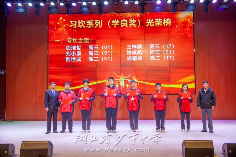 大会举行了“习坎系列奖学金”颁奖仪式。学校领导及参会嘉宾相继颁发了刘创奖学金、荆圃奖学金、学良奖学金、“813”奖学金。奖项辐射德智体美劳等教育的各个层面,包括学业奖、竞赛奖、特长奖、创新奖、综合奖等。这些奖学金大部分由从沙市中学走出的杰出校友捐资设立,有的是由知名企业家或社会贤达捐资设立,旨在奖励勤奋学习、刻苦钻研、品学兼优、学有所长的学生,鼓励习坎学子自强不息,砥砺德行,提高自身综合素质,努力成为社会精英、国之栋梁。本年度习坎系列奖学金授奖学生达121人次,另有8个微电影剧组、1个艺术团获奖。湖北达雅生物科技股份有限公司副总经理熊洪录,1992届校友、荆州市永成无损检测有限公司总经理刘良永,1994届校友、长江大学电子信息与电气工程学院教授、硕士生导师熊杰,1994届校友、荆州市城发集团同和公司副总经理万翔,1996届校友、荆州市妇幼保健院副院长盛斌,1996届校友、湖北昭信律师事务所非诉部主任、安道麦股份有限公司法务部经理刘世奇,2000届校友、荆州市理工职业学院智能制造学院书记周威,2007届校友、荆州市广播电视台主持人、国家一级播音员唐添栖等颁奖嘉宾分别上台为获奖学生颁发了荣誉证书。