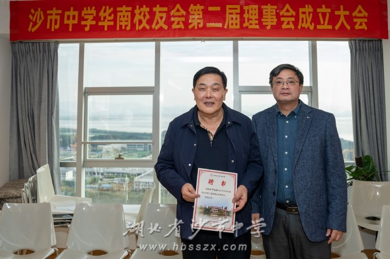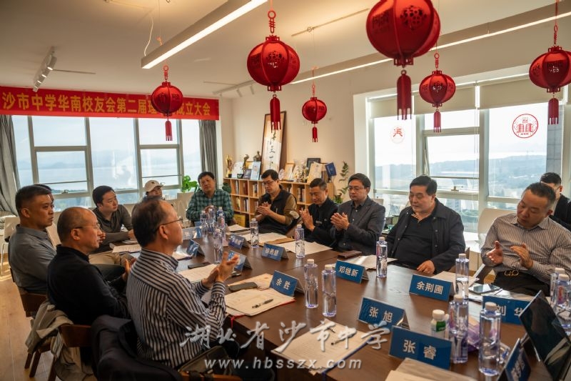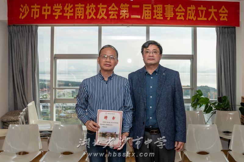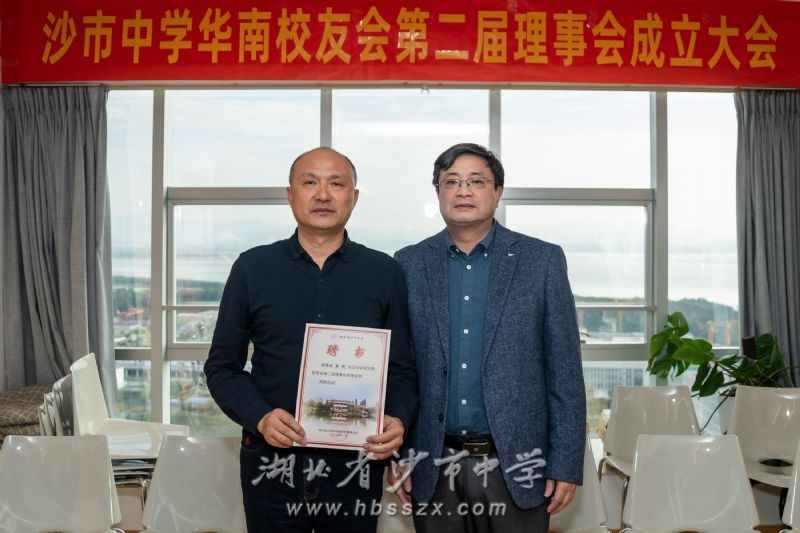 成立大会会场 会上,沙市中学华南校友会第一届理事会会长刘创致辞,并作第一届理事会工作总结。第一届理事会秘书长余胜作推选第二届理事会成员的说明。沙市中学校长徐善慧宣读关于聘任沙市中学华南校友会第二届理事会成员的文件,聘任原沙市中学校长邓继新、1981届校友刘创、1985届校友余荆圃、1984届校友田红兵为华南校友会名誉会长,聘任1981届校友余胜为华南校友会第二届理事会会长,聘任张杰、刘燕、庞文革、杜辉、周华、张阳、刘华、李劼、张睿为副会长,张旭为副会长兼秘书长,佘晓鹏、彭超、徐永铭、赵聪毅、周良成、陈梦圆为副秘书长。徐善慧校长向沙市中学华南校友会第二届理事会成员颁发聘书。