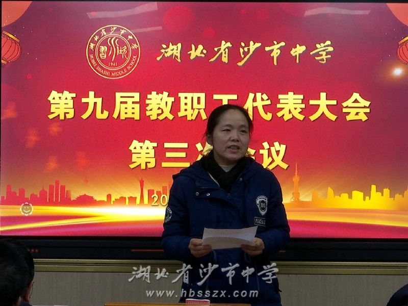 湖北省沙市中学第九届教职工代表大会第三次会议在圆满完成各项议程后,胜利闭幕。会议由工会副主席李坪同志主持。学校党委副书记、校长徐善慧同志,党委副书记、纪委书记李义国同志出席会议。