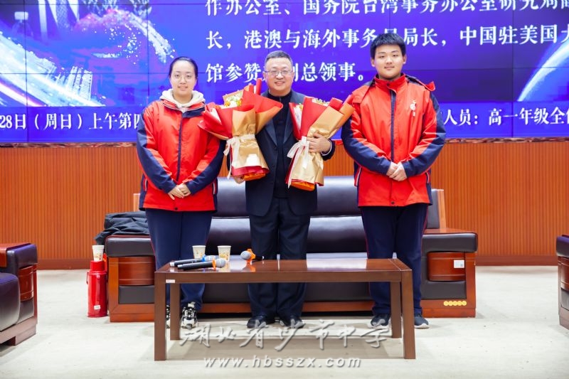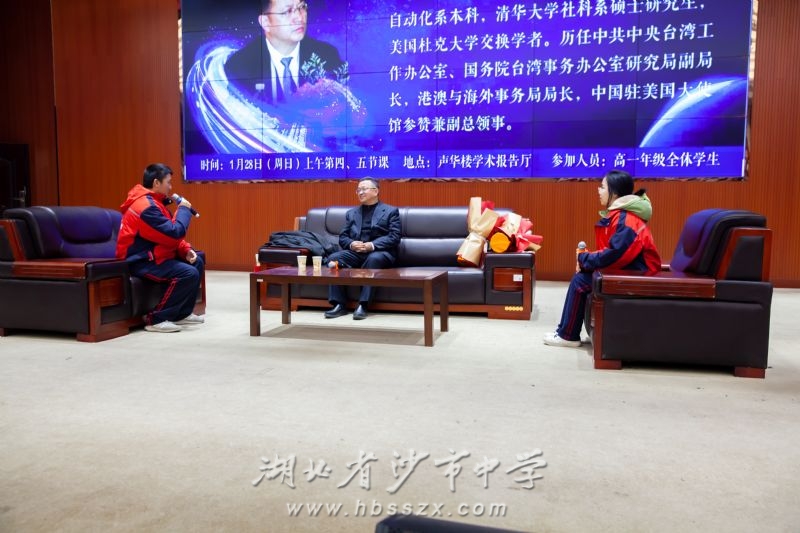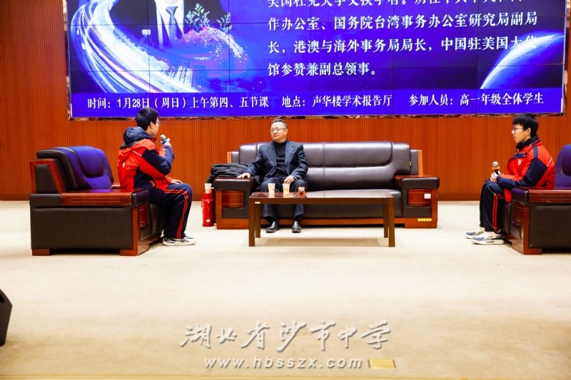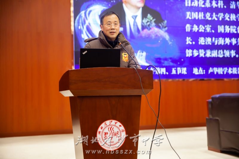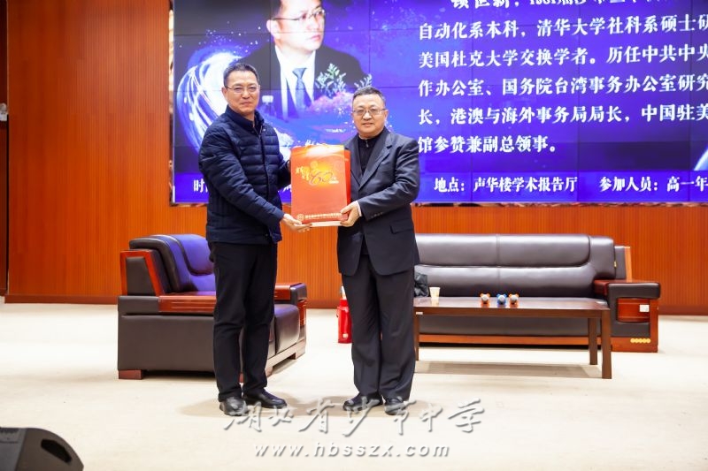 1月28日上午,沙市中学1981届校友、中国驻美国大使馆参赞兼副总领事顿世新作客“习坎讲坛”,带来了题为《百年未有之大变局下青年学生如何选择》的精彩讲座,1981届校友、荆州市税务局副局长程宁陪同来访。我校党委书记熊礼才、党委副书记、校长徐善慧、党委委员、副校长赵文华、高一年级全体班主任及学生参加了此次活动。