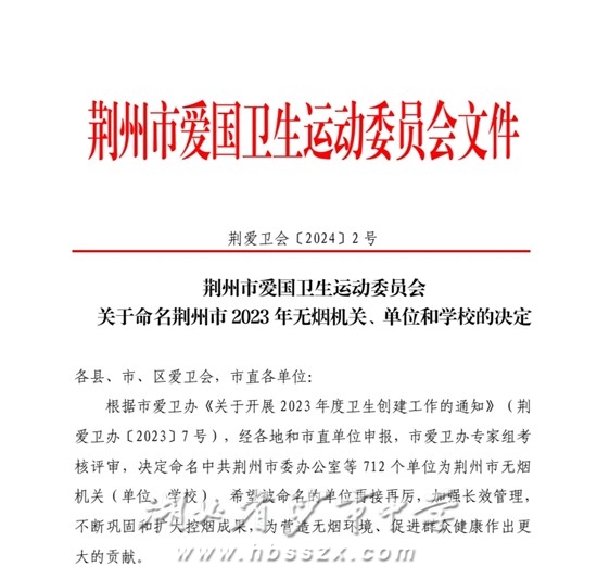 禁烟主题班会 日前,荆州市爱国卫生运动委员会发布文件(荆爱卫会[2024]2号),命名一批无烟机关、单位和学校,沙市中学荣获“无烟校园”称号。
