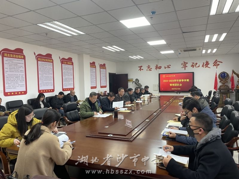 2月18日上午,沙市中学在综合楼七楼党员活动室召开了新学期管理团队会议,会议由党委副书记、校长徐善慧主持,全体管理团队成员参加会议。
