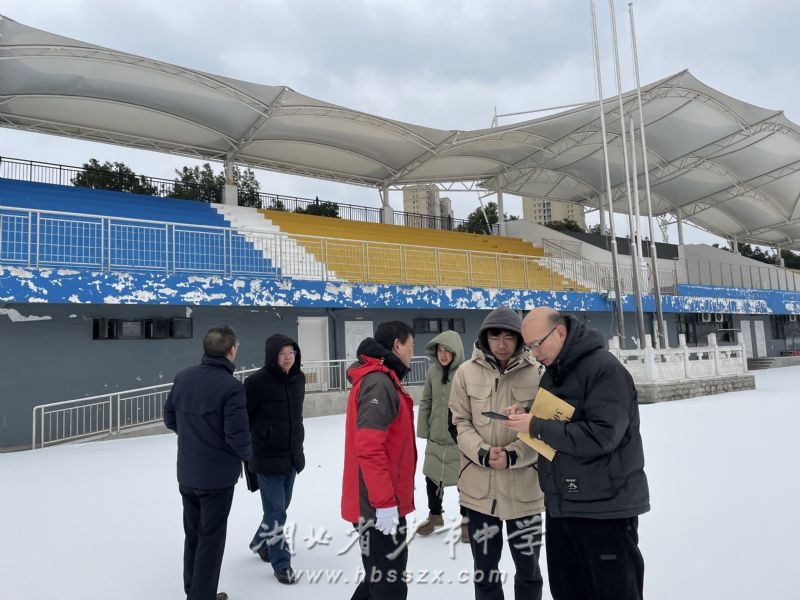 2024年2月23日,市教育局党组成员、副局长陈庆华、市教育局基教科科长宋国亮、市学校后勤中心工会主席洪松等领导和专家组成的督导组在沙市中学检查2024年春季学期开学安全工作,学校党委委员、副校长胡直、教务处主任潘磊、总务处主任杨攀、综合治理办公室主任高胜华及相关职能部门负责人迎接检查。