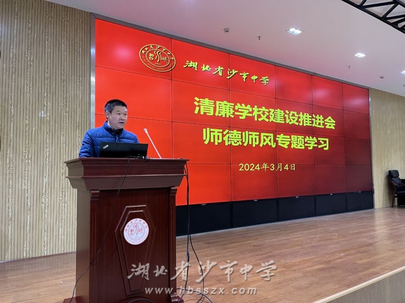 沙市中学召开2024年春季师德师风专题学习会议暨清廉学校建设推进会