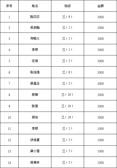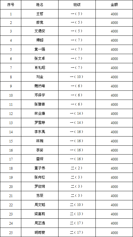 3、特别奋进奖。主要奖励在高一、高二每学期的期末考试和高三的第二次全市调研考试中,虽然以线下生的名义进入沙市中学,但通过本人的刻苦学习,成绩进步很快,理科进入年级前200名,文科进入年级前50名的优秀学生。每人奖励人民币4000元。