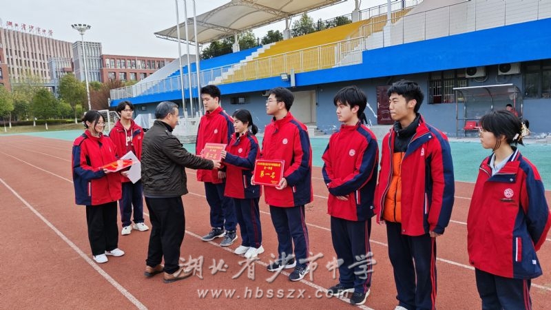 比赛完成后,现场核算评委打分,最终获得前三名的班级有高一(2)班,高一(3)班,高一(4)班,高二(2)班,高二(1)班,高二(17)班。赛后对获得本次比赛的前三名班级现场颁奖,党委委员、副校长赵文华为获奖班级颁奖。同时提出跑操有利于同学们的身体健康和良好品质的培养,也是释放学习压力的渠道,是提振学生精神气的举措,更是展示班级文化和学校整体风貌的窗口,希望同学们以跑操为契机,将这种拼搏进取力,班级凝聚力融入到今后的学习生活中,在青春的赛道上跑操,为健康、为梦想奔跑吧!