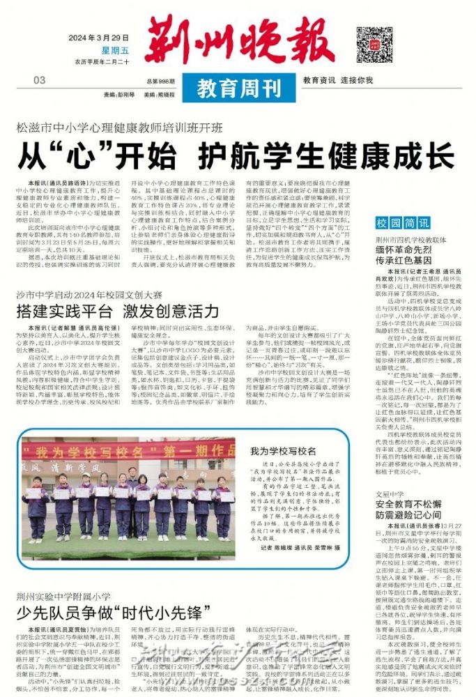 《荆州晚报》2024年3月29日报道我校启动校园文创设计大赛