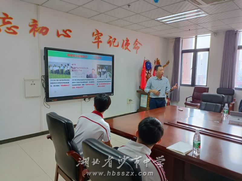 座谈会现场 在座谈会上,胡骏教授做了题为《粮食安全与现代生物技术》的专题讲座。“洪政八政,食为政首”,胡骏教授的科普报告引用了我国粮食生产现状及进口数据等,展示了我国及世界粮食安全问题的严峻和挑战,激励同学们树立大食物观,珍惜粮食,热爱祖国。他通过讲述进化与人工驯化等知识,介绍了植物在推动人类社会进步中发挥的重要作用,以及进入二十世纪以来,现代生物技术在改造植物和提高人民生活水平中发挥的积极作用。他鼓励同学们学习真本领,掌握新知识,热爱科学,挑战新高度。