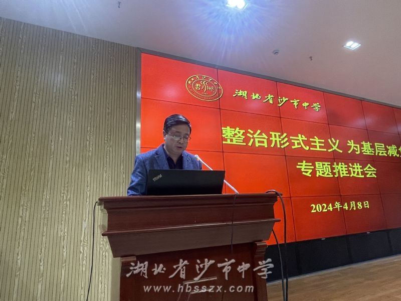 为深入贯彻落实习近平总书记关于力戒形式主义官僚主义的重要论述精神,落实党中央关于整治形式主义为基层减负工作的决策部署和省委、市委相关工作要求,进一步提升学校作风建设水平,推进基层治理效能提升,4月8日下午,沙市中学举行“整治形式主义为基层减负”专题推进会,全体教职工参加。