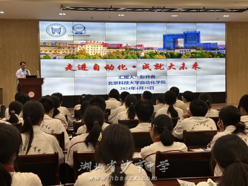 为进一步开拓学生认知视野,提升学生思维水平,激励学生树立远大目标,4月26日至28日,沙市中学邀请西北工业大学徐斌教授、北京理工大学刘峡壁教授、北京科技大学彭开香教授来校开展科普、学术讲座活动,高一、高二年级部分班级学生参加。