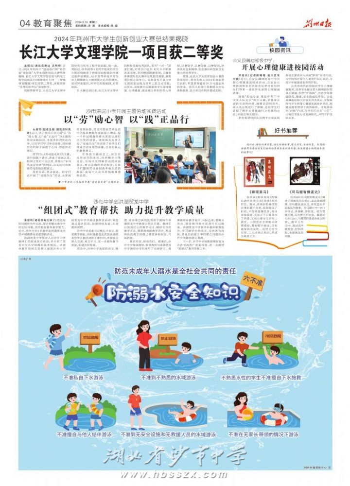 《荆州日报》2024年5月15日报道我校帮扶洪湖贺龙中学