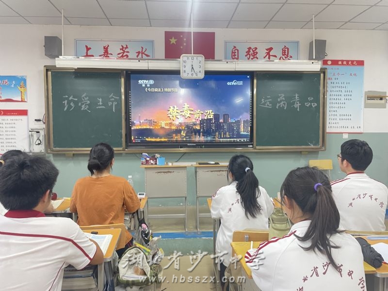 从校门口的电子屏到教学楼下的宣传栏,禁毒宣传标语和海报随处可见,发人深省,呼吁同学们提高自我保护意识和能力,坚决向毒品说“不”!沙市中学团委也利用广播台向同学们发出了远离毒品的倡议。