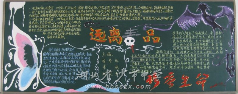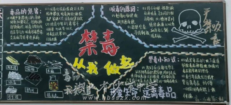 高一、高二年级以“珍爱生命 远离毒品”为主题绘制了黑板报。同学们踊跃参与宣传活动,通过多种渠道查阅收集相关资料,团结协作,集思广益,充分发挥设计、绘画和书写特长,呈现出主题突出、内容丰富和版面精美的黑板报,寓教育性、知识性和艺术性于一体。