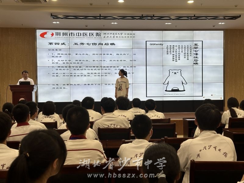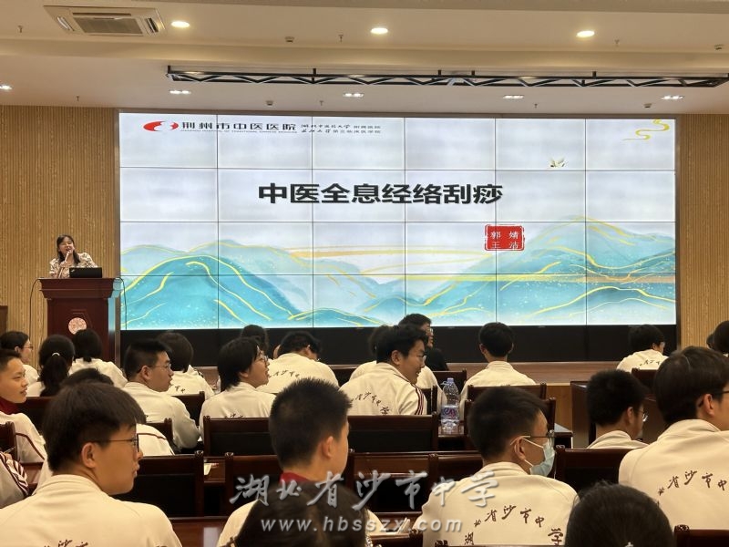 为进一步发挥“校园中医药文化基地”的功能和作用,加强学生对中医药文化知识的学习和了解,传承中华优秀传统文化,增强文化自信,5月24日下午15:40,荆州市中医医院专家走进习坎讲坛,为沙市中学高二年级2、11、12、13班学生带来了中医药文化知识的专题讲座。