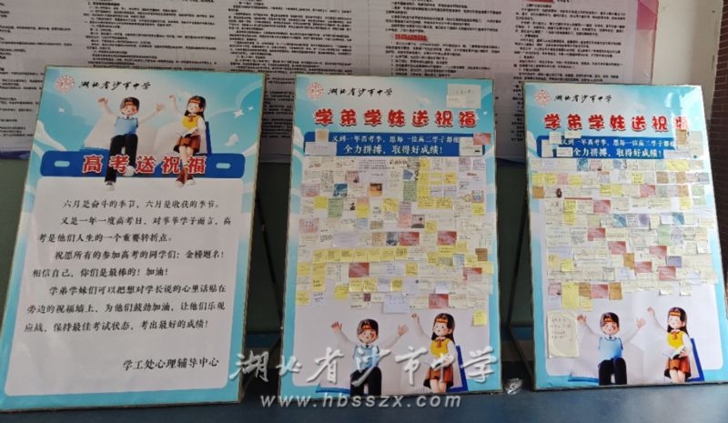 随着高考的脚步日益临近,我校的高三学子们正在紧张而充实地备战这场人生中的重要考试。为了给他们加油鼓劲,传递温暖的力量,我校精心策划了“我为高三送祝福”活动,学工处心理辅导中心联合高一高二年级学生,通过手写便利贴的形式为高三学长学姐送上美好祝福。