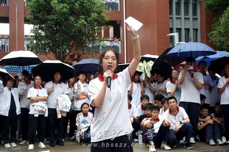 当晚七点,在学生会干部的组织下,高一、高二年级齐声呐喊“高三加油!高考必胜!”,为高三学子加油助威。振奋人心的口号在两幢教学楼之间环绕回荡,令人热血沸腾。每个口号都铿锵有力,每句祝福都掷地有声。高一、高二的学弟学妹喊出了气势,也喊出了对高三学长学姐们高考必胜的信心。