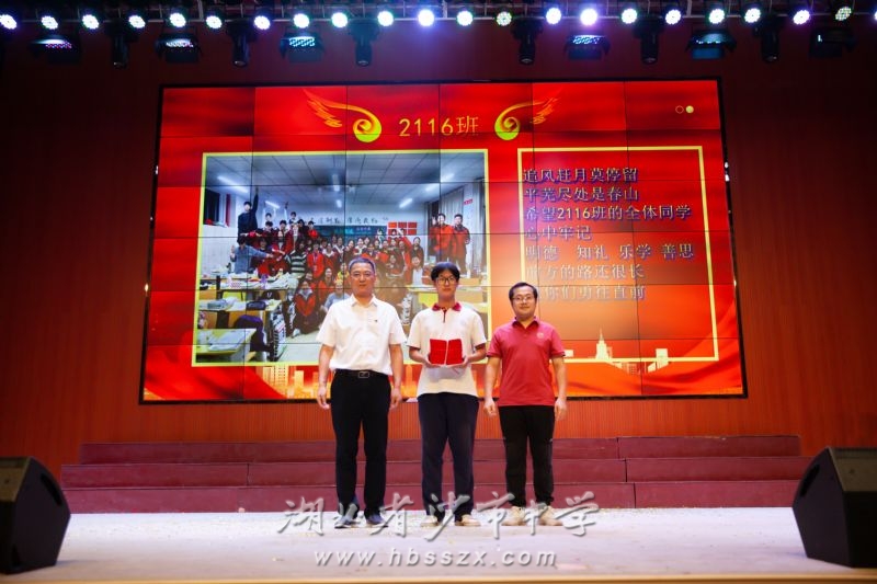 道阻且长,行则将至;行而不辍,未来可期。学校党委书记熊礼才为高三团学会代表和高三年级各班颁发毕业证书。各班班长在班主任陪同下依次上台,郑重地从熊礼才书记手中接过毕业证。