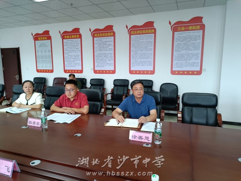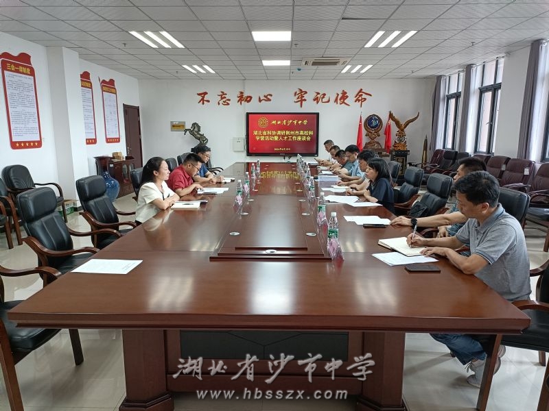 会议现场 参加座谈会的领导有湖北省科协国际部部长韩飞,湖北省青少年科技中心副主任董燃、科技项目部部长袁小梅,荆州市科协二级调研员邓贤浩,荆州市科协学会部负责人曹宇,荆州市科技馆副馆长柳明、培训部部长廖圣柏,沙市中学党委副书记、校长徐善慧,沙市中学教务处副主任杜景泉、科技实验中心副主任黄燕平以及公安县第一中学新高考指导中心主任贺梅红。会议由沙市中学党委副书记、校长徐善慧主持。