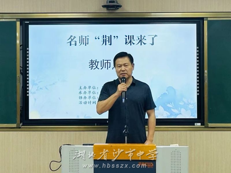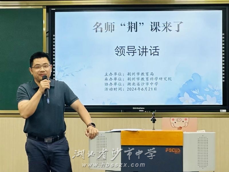 陈勇主任主持讲座 荆州市教育局副局长陈庆华作了总结发言。陈庆华表示,陈媛媛老师的课是一个全新尝试:新的教学内容、新的师生关系和新的课堂模式。整个课堂教学内容从导学、自学、互学、展示以及拓展这几个情节来循序递进,是一堂非常成功的展示课。陈庆华强调:学习中心课堂是核心素养导向,以学生高质量学习为中心,教与学共生共促、深度融合的课堂。期待到2027年,以学生学习为中心的课堂教学理念深入人心;中小学校课程教学改革工作蓬勃开展;各学段、各学科先进课堂范式基本形成。全市建成3个课程教学改革示范县(市、区)和100所课程教学改革先进校;培育200名课程教学改革名师;建设至少有500个学习中心课堂示范课例的资源库。学习中心课堂成为推动基础教育扩优提质,赋能荆州教育强市建设的重大变量。