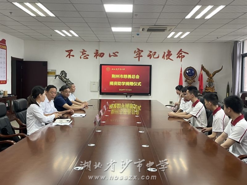 捐资助学暖人心,常怀感恩逐梦行。7月10日上午,荆州市慈善总会捐资助学捐赠仪式在沙市中学七楼会议室举行,荆州市慈善总会驻会副会长兼秘书长陈云、荆州市慈善总会宣传筹募部部长彭先民、沙市中学党委副书记、校长徐善慧、副校长唐年新和沙市中学2024届毕业生中受资助的10名优秀学子参与活动。