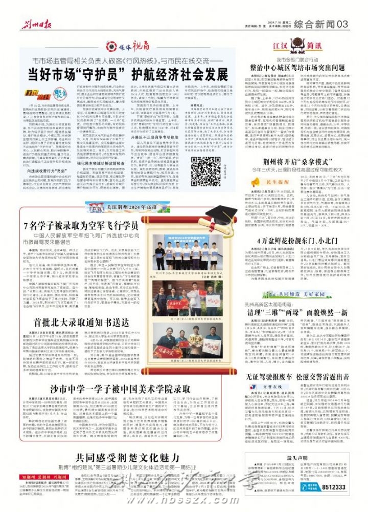 《荆州日报》2024年7月16日报道我校高考招生录取成果