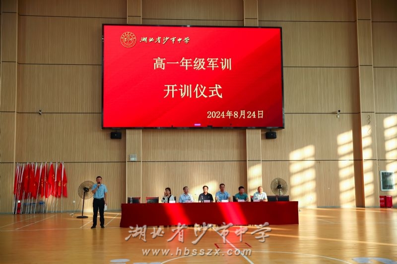 8月24日早上7点,沙市中学在体育馆隆重举行了2024年高一新生军训开训仪式。学校领导和家长代表出席了开训仪式。活动由学工处主任李昌坤主持,高一年级全体班主任、学生和教官参加了开训仪式。