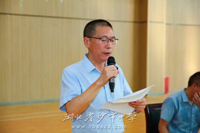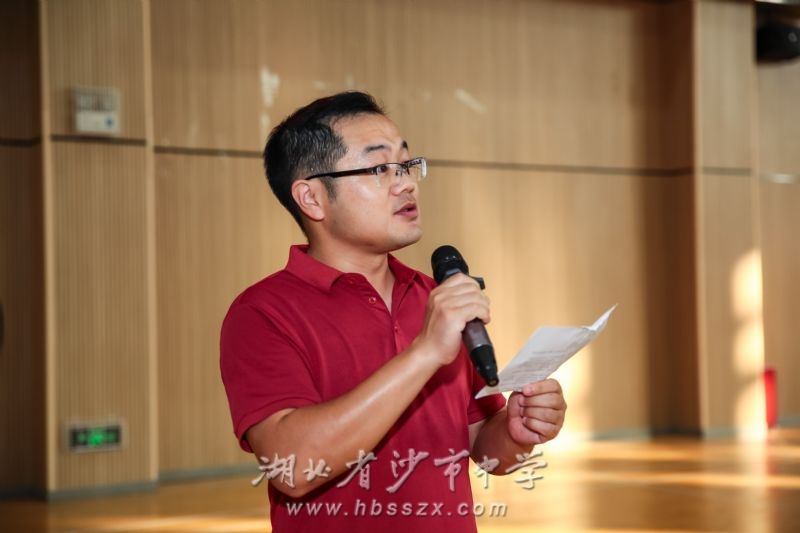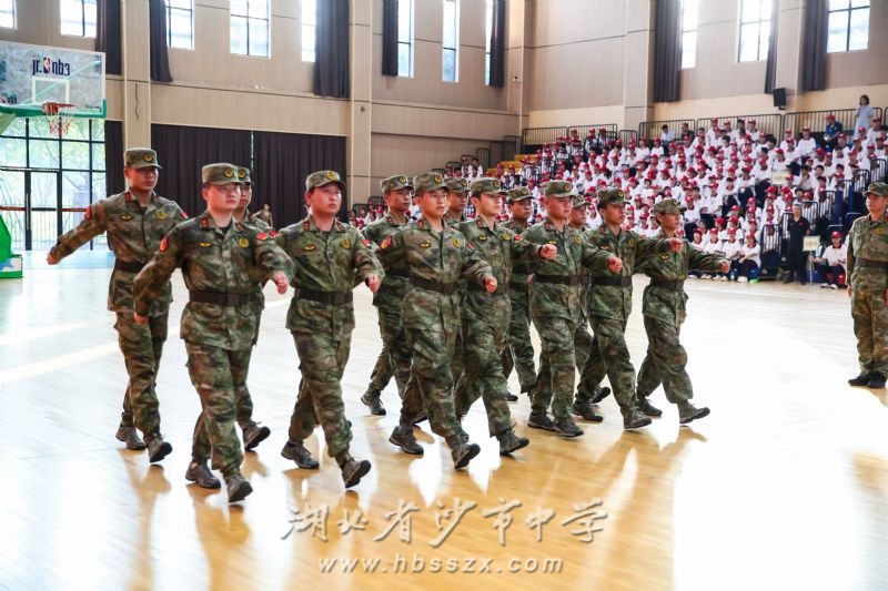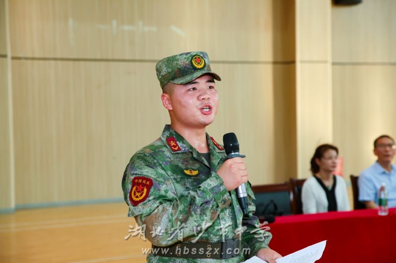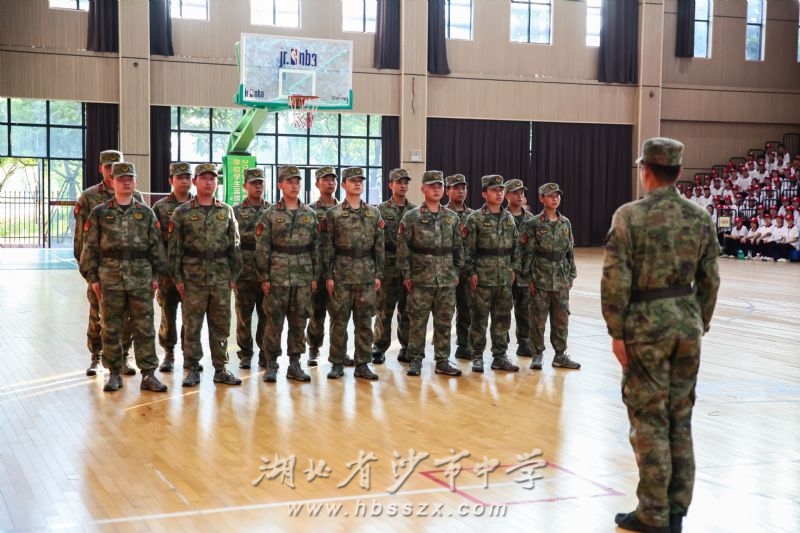 党委委员、副校长胡直发表军训动员讲话。他介绍了沙市中学的校园文化和辉煌成就,鼓励同学们通过军训“立正”身心,铸就钢铁般的体魄和意志,继承与发扬“上善若水、自强不息”的习坎精神。