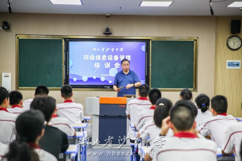 9月5日晚,沙市中学信息技术与网络中心召集高一、高二年级各班班长和资产管理员,在综合楼515录播教室召开专门会议,中心负责人关信章老师就班级信息设备的使用和管理对与会学生干部进行了专项培训,旨在通过培训加强班级信息设备的规范管理,提升全校教育信息化工作的整体水平。