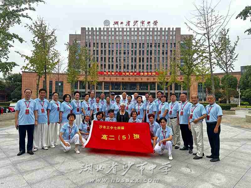 2024年10月5日上午9点,沙市中学1974届高二(5)班的30多位校友,在班主任丁贤香老师的带领下,重返母校,隆重举行了毕业50周年庆典。
