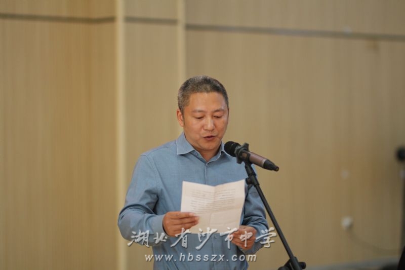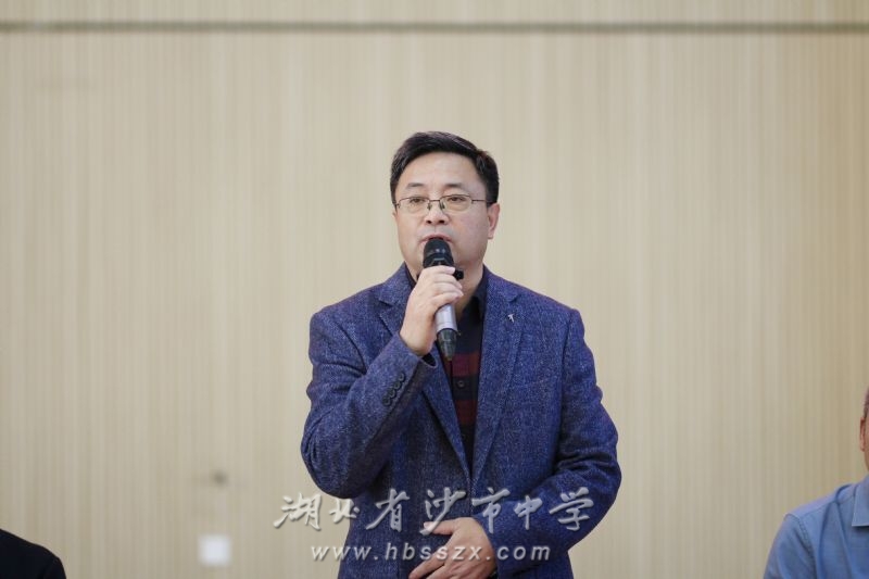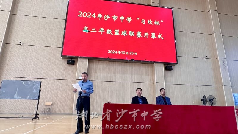 沙市中学党委委员、副校长唐年新致开幕词。他表示,篮球作为一项富有魅力的体育运动,不仅能够强健体魄,更能培养团队合作精神、竞争意识和坚韧不拔的毅力。在篮球场上,我们看到的是运动员们挥洒汗水、奋力拼搏的身影,感受到的是他们对胜利的渴望和对梦想的追求。这种精神,正是我们在学习、工作和生活中所需要的。激励着我们不断超越自我,挑战极限,去实现自己的人生价值。