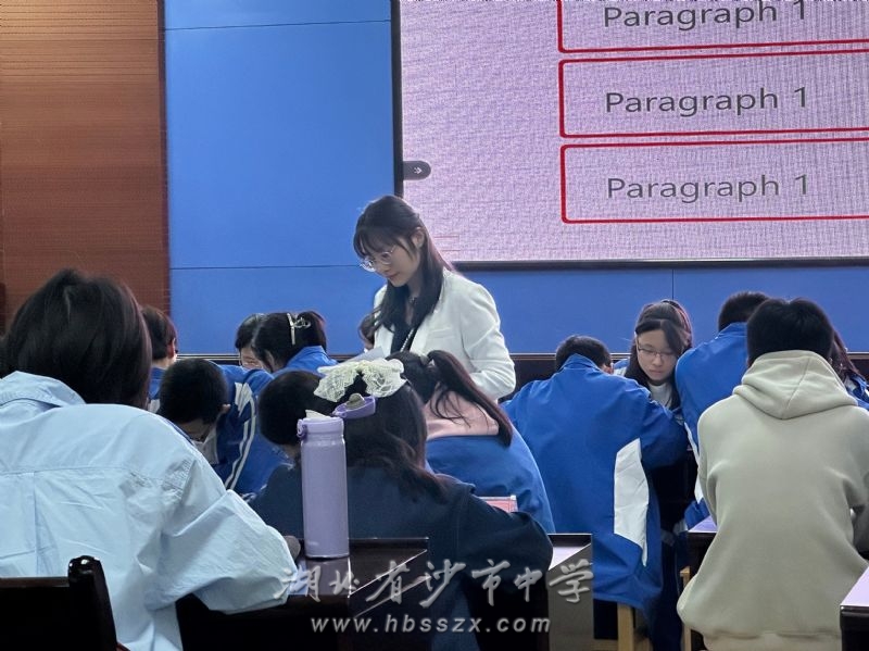 沙市中学邵凤鸣老师授课中 李明慧老师在教学过程中,通过感知与注意、概括与整合、内化与应用等多个环节,引导学生在实践中学习并运用新知识,增强了学习的有效性和趣味性。她的教学设计,重点在于通过“无灵主语 + 有灵动词”的结构来提升学生的英语写作能力。同时,教学活动注重学生的参与和互动,通过观察、讨论和互评等方式帮助学生更好地理解和运用语言。