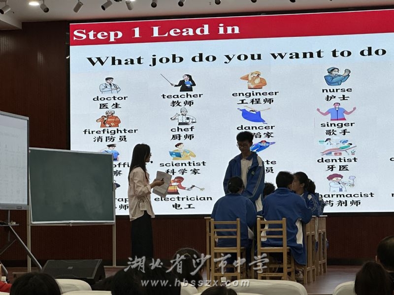沙市中学英语教师与荆州市教科院英语教研员陈媛媛合影 本次比赛采取“现场答题+教学设计+现场教学+现场说课”的形式。邵凤鸣老师的教学围绕一篇给定材料的续写任务展开,材料讲述了一位刚高中毕业的学生在选择职业道路时的困惑,通过在银行和医院的实习经历进行对比,在医院实习快结束时发生了一起意外事件。她先带领学生阅读材料,提取关键信息。再帮助学生对材料进行分析,提出合理问题并进行逻辑回答,为续写做准备。学生们在续写故事中展现了一定的创造力和逻辑思维能力,能够根据给定材料合理预测情节发展。通过对不同职业的对比描写,学生对职业选择有了更深入的思考。