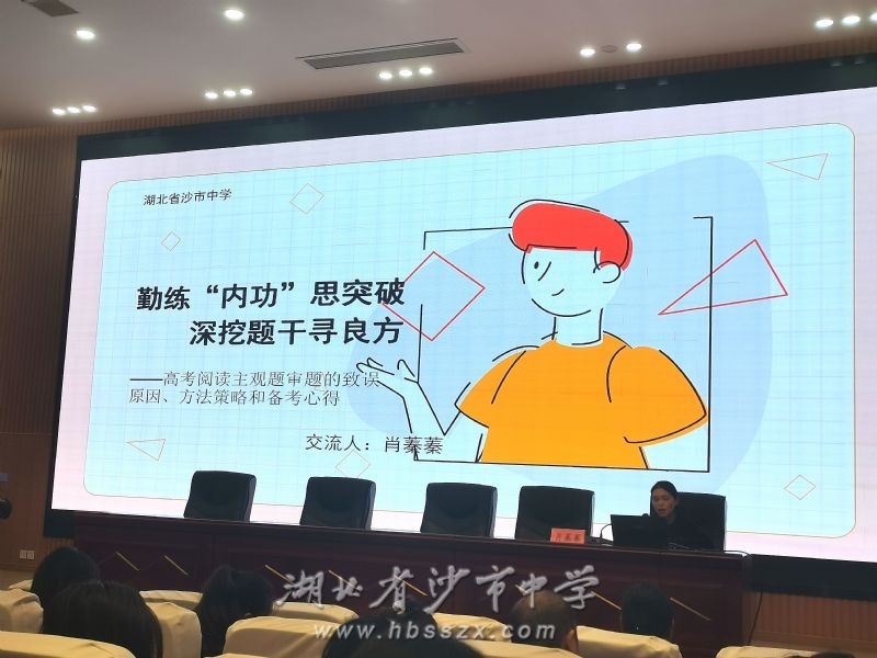 活动中,沙市中学青年教师肖蓁蓁做了高考备考经验分享,标题《勤练“内功”思突破,深挖题干寻良方》清晰明了,PPT逻辑分明,从主观题失误原因、备考方法策略与备考心得三个方面细致展开,继冀李老师之后,再一次很好地展现了沙市中学的风采。